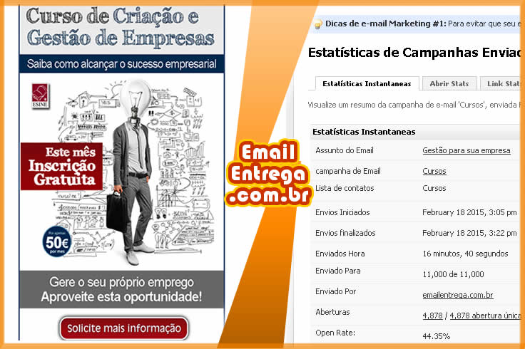 O EmailEntrega foi criado com o propósito de suprir as necessidades de entrega à caixa de entrada de campanhas de E-mail Marketing. Trabalhamos com ips de altíssima qualidade o que garante 100% de entrega a caixa de entrada de seus Emails, trabalhamos na mensuração e otimização de qualidade de nossos ips por meses e temos fornecedores (ISP) com padrões elevados de qualidade o que garante um ótimo retorno sobre seu investimento. Seguimos os padrões anti spam/ICANN sobre leis internacionais, temos uma política rigorosa em questão de qualidade, tudo isso para você cliente aproveitar o melhor sistema de E-mail Marketing com o melhor preço do mercado.